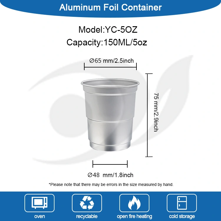 From commercial operations to daily leisure, from large-scale events to family scenes, Yunchu aluminum foil 5oz disposable recyclable cold drinks Aluminum drink cup meet the core needs of different scenes with safety, quality, environmental protection attributes and diverse adaptability. Foshan Yunchu Aluminum Foil Technology Co., Ltd. has always adhered to the concept of "respect, unity, and progress" and used high-quality aluminum foil packaging products as a carrier to convey the concept of sustainable life. Its products are exported to Europe, the United States, Southeast Asia and other regions, and have won the trust of customers around the world. Choosing Yunchu aluminum foil 5oz aluminum refrigerated drinking cups means choosing quality, environmental protection and professionalism, making every drink a practice of green life.