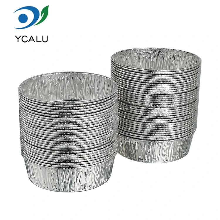 Yunchu aluminum foil manufacturer's disposable baking air fryer silver aluminum foil container is suitable for baking cakes, air fryers, etc. The size is suitable for use in small household air fryers and ovens to ensure uniform heat circulation during baking. The deepened bowl wall design can not only accommodate sufficient ingredients, but also prevent grease and sauce from splashing during baking and air fryer high-temperature baking, keeping it clean. The small capacity accurately matches the needs of small portions of baking. It conducts heat evenly and is not easy to burn. It has good thermal conductivity, is heated evenly, and is not easy to burn or burn. It is delicious and safe to make. It is oil-proof and anti-fouling. It is easy to remove from the mold. There are laces around it for grabbing. The pleated shape is easy to take. The bottom is round and smooth and can be quickly removed from the mold.