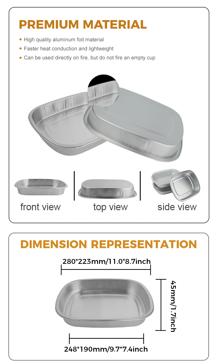 1. Yunchu newest Disposable catering takeaway silver square Aluminum Foil Containers have outstanding insulation properties, ensuring that the food remains warm when delivered. The sealed design effectively retains moisture and aroma, restoring the fresh and juicy taste and flavor of the food as it was when it was cooked.