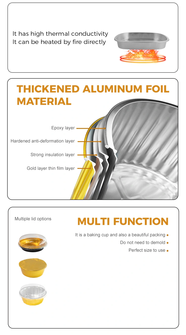 It is the perfect packaging for egg tarts, brownies, cupcakes, single slices of pizza or flaky pastries. The insulation property of the aluminum foil helps to maintain the warmth and soft texture of the pastries right after they are baked; it perfectly retains the flavor and is suitable for takeout from bakeries and cafes.