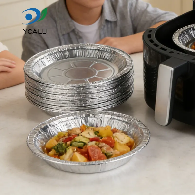 Yunchu Aluminum Foil Disposable Disk Air Fryer Silver Aluminum Foil Container Food-grade high-purity aluminum foil has no impurities and odor, and complies with the national food contact material standards. It can be directly in contact with raw and cooked ingredients - whether it is marinated barbecue, refreshing roasted vegetables, or soft, glutinous and sweet roasted desserts. There is no chance of harmful substances infiltrating. The silver glossy aluminum foil has excellent thermal conductivity. The one-piece disc design fits most air fryer sizes. Available in 6-inch, 7-inch, and 8-inch sizes, it is suitable for small portions and sharing with the whole family. There is no need for repeated adjustments. It can be easily placed in the frying basket, allowing the advantages of the material to be fully utilized.