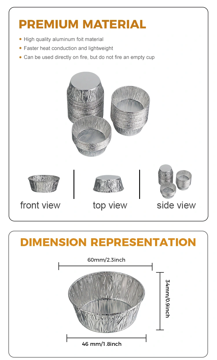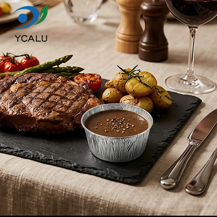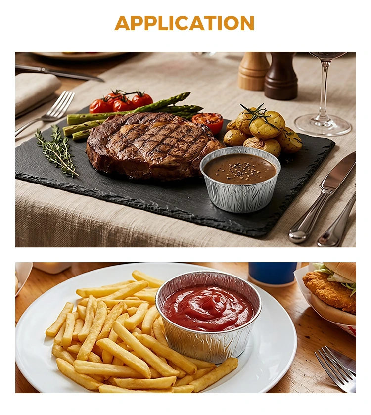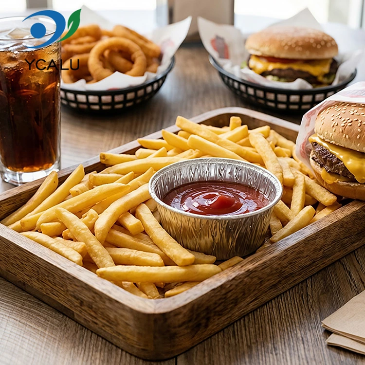 Yunchu Aluminum Foil Supplier Disposable Round Sauce Air Fryer Silver Aluminum Foil Container Food Grade Aluminum Foil Material, no odor, no heavy metal residue, complies with food contact standards, high purity and stable chemical properties. Even if it is filled with acidic sauces and heated at high temperatures, it will not release harmful substances, and you can feel completely safe when in direct contact with food. The product has passed FDA food grade certification and strictly follows FDA 21 CFR related standards, after professional migration testing and heavy metal detection, the content of harmful substances such as lead and cadmium is far below the safety threshold, and the qualifications are complete. Whether it is for home or commercial use, you can choose with peace of mind. Use it to portion out sauces for marinating meats, salad dressings for vegetables, and vinegar dishes for dipping dumplings. The portions are just right without wasting. It can also avoid odor transfer, and it can be stored neatly in the refrigerator without taking up space. Takeaway merchants use it to store sauces, which are sealed and leak-proof, and delivered to customers cleanly. Whether it is ketchup, sweet chili sauce, or thick sesame sauce, there will be no embarrassment of leakage and soiling the food. Even for outdoor picnics and camping, you can bring a few with you and use it to hold dipping sauces. It is light and does not take up space. You can throw it away directly after use. You don’t have to carry a bunch of dirty containers back home. It is mainly about ease and trouble-free.
