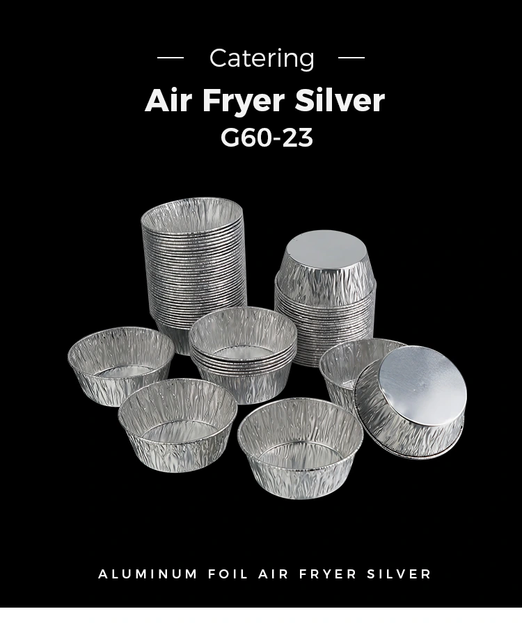 Yunchu Aluminum Foil Supplier's Disposable Round Sauce Air Fryer Silver Aluminum Foil Container Silver aluminum foil has a thick texture and is not easily damaged or deformed. Even if it contains thick sauces and soupy ingredients, it can be held firmly without leakage or collapse. The edges have been reinforced and pressed, making them smooth to the touch, will not scratch your hands, and are more secure to handle. Disposable design, throw away after use, saving you the trouble of cleaning the container. It can not only improve efficiency but also keep the environment clean and tidy in scenarios such as takeout packaging, catering stores, camping and picnics. Moreover, the aluminum foil material is recyclable, green and environmentally friendly, and it will not cause too much environmental burden if discarded after use, taking into account convenience and environmental protection.