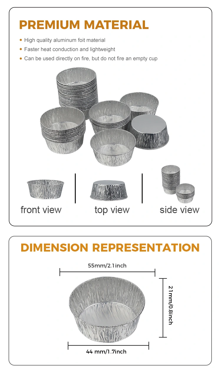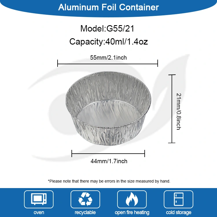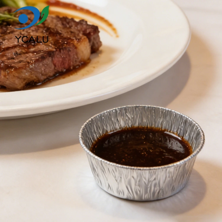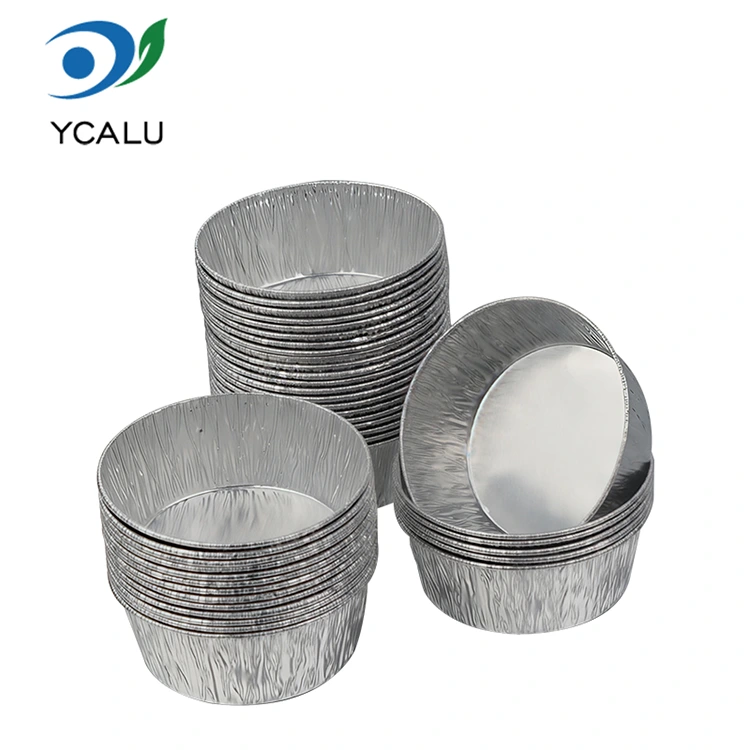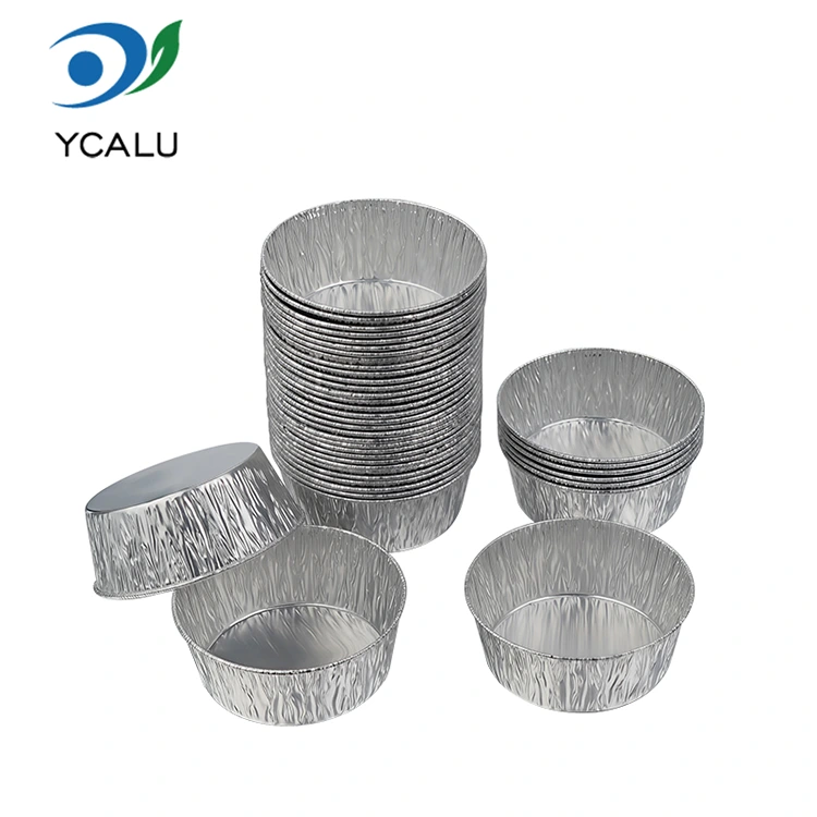 Yunchu Aluminum Foil Supplier's disposable silver round dipping air fryer silver aluminum foil container is made of food-grade thickened aluminum foil. It is safe, has no odor, and has no harmful precipitation. It can directly contact all kinds of dipping materials. This small aluminum foil container can be stacked to save space, not deformed, and does not leak. Silver aluminum foil has a uniform texture and excellent thermal conductivity. It can be used in restaurants, cafes, family gatherings, etc. It is used with snacks in air fryers, etc. Even if it contains thick sauces and oily dipping sauces, it will not leak. It keeps the tabletop and kitchen utensils clean and tidy. The presentation of the foil is simple and beautiful in various scenes. The silver appearance can be matched with various dinner plates.