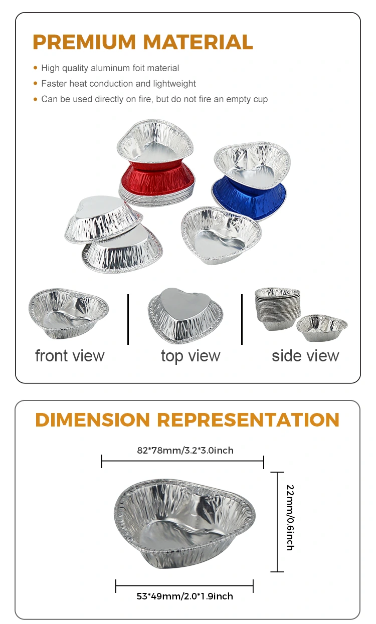 Yunchu Aluminum Foil Supplier’s heart-shaped air fryer silver aluminum foil container is not only a cooking tool, but also a carrier of a sense of ritual in life. Breaking the monotonous design of traditional containers, the smart heart-shaped outline brings a romantic atmosphere. Whether it is an exquisite decoration for daily meals or a creative presentation for holiday dinners, it can make food and beauty go in both directions, injecting tenderness into every meal. Material is the core of peace of mind. We carefully select food-grade raw aluminum foil to make it, which has no odor and no harmful residue. It has passed multiple safety tests, making direct contact with food more secure. The aluminum foil material has excellent thermal conductivity, allowing the heat of the air fryer to penetrate evenly into every part of the food, locking in freshness and juice during grilling and baking, and retaining the original flavor of the food. It is not easy to deform or break, has both flexibility and solidity, and is suitable for the high-temperature working environment of the air fryer. Easily cope with diverse cooking needs. The product can withstand a wide temperature range of -20°C to 220°C. It can be put into the air fryer to make egg tarts and other delicacies, and can also be used for oven baking, refrigerator refrigeration and steamer heating. One device can be used with multiple functions to unlock multiple cooking scenarios. It does not release harmful substances at high temperatures, and can block the odor of food when refrigerated, taking into account both practicality and safety. The surface of the silver aluminum foil has been specially treated and is full of luster. It not only improves the texture of the product, but also reflects heat, allowing the ingredients to be heated evenly while reducing nutrient loss. The baked food is crispy on the outside and tender on the inside, with an attractive color. The heart-shaped design is not only beautiful, but also fits the inner space of the air fryer. It is stable and does not shake, and is easy to grab. There is no need for tedious cleaning after use, just throw it away, saving you the trouble of cleaning and reducing the burden of fast-paced life.