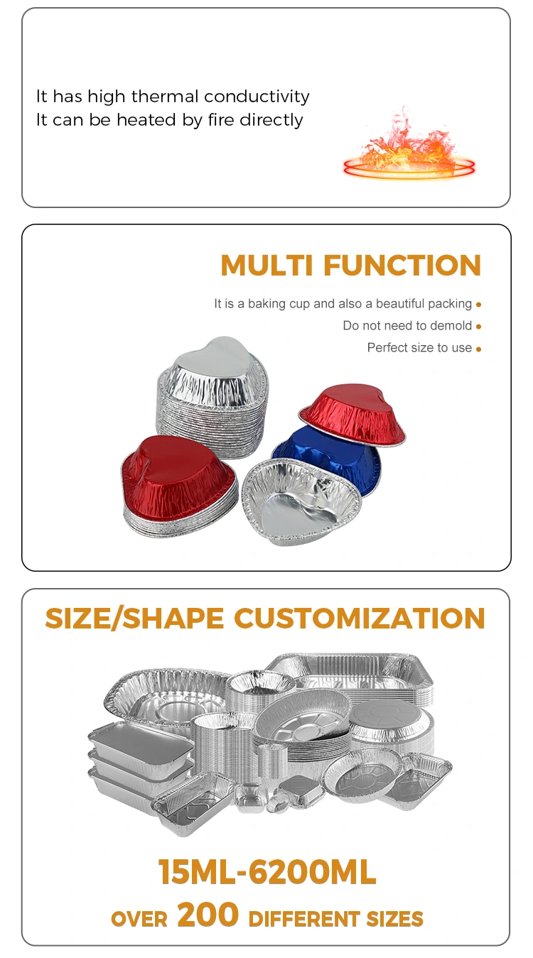 With a gentle shape, it carries a safe and delicious taste. This heart-shaped air fryer silver aluminum foil container is not only a cooking tool, but also a small beauty that conveys your heart and embellishes your life. Whether you are a novice or a cooking expert, you can use it to easily make delicious and delicious food, making every cooking time full of expectations and every time you enjoy it full of happiness.