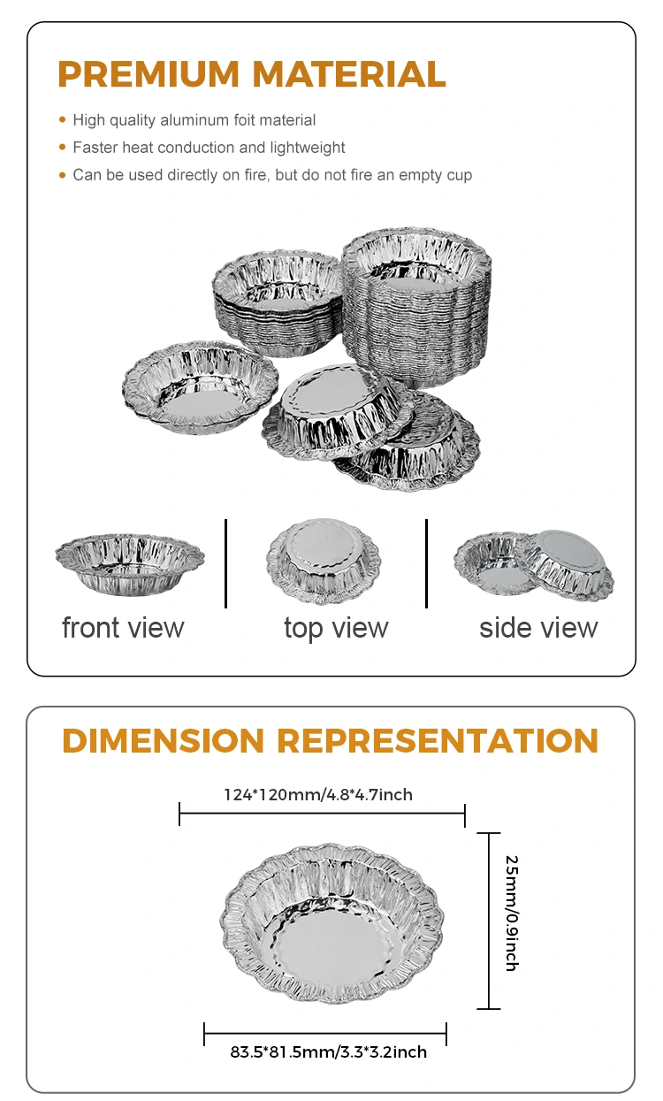 Yunchu Aluminum Foil Supplier Lace round baking cake Silver Aluminum Foil Containers, very convenient for baking cakes, egg tarts, and air frying, with many functions, thick and durable for baking. When choosing baking molds, what do you value the most? Is the material reliable? Is it easy to demold? Is it user-friendly? This lace round baking cake silver aluminum foil container meets your needs for baking molds! One-piece molded, thickened and durable for baking, made of 8011 food contact grade aluminum foil material, safe for food contact, not easily deformed or leaking, uniform heat conduction, not easily burnt or overcooked, delicious and safe to make, oil and stain resistant, easy to demold, with lace around for easy grip, the wrinkled shape makes it easy to handle, and the bottom is round and smooth for quick demolding.