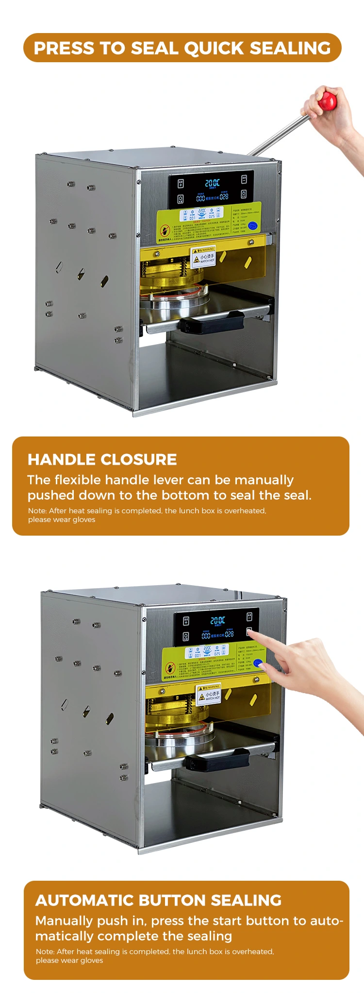 More efficient: No need to pair with separate sealing films. The lunch boxes and heat sealers are ready to use immediately. Manual operation does not require waiting for preheating. Small-batch orders can be processed quickly, and large orders can also be steadily advanced. It can easily handle scenarios such as peak dining hours and sudden surges in festival orders.