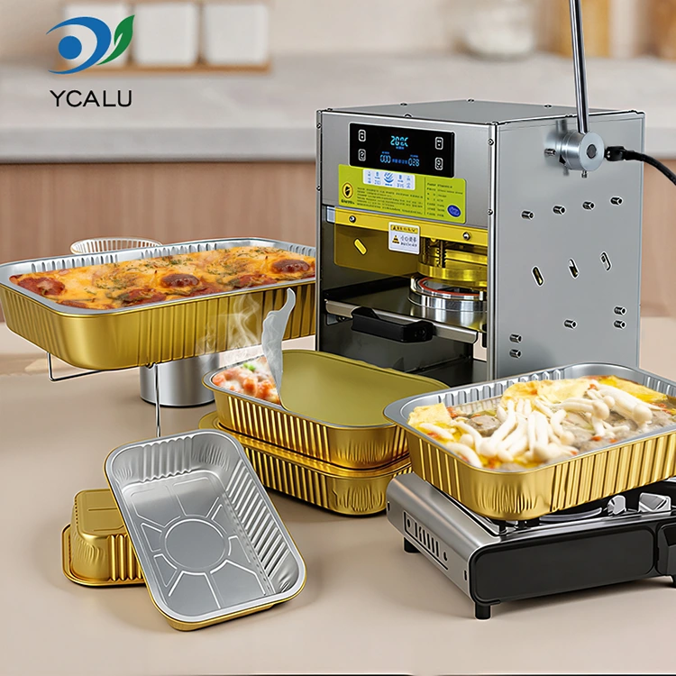 Manual Heat Sealing Machine with Gold Aluminum Foil Containers