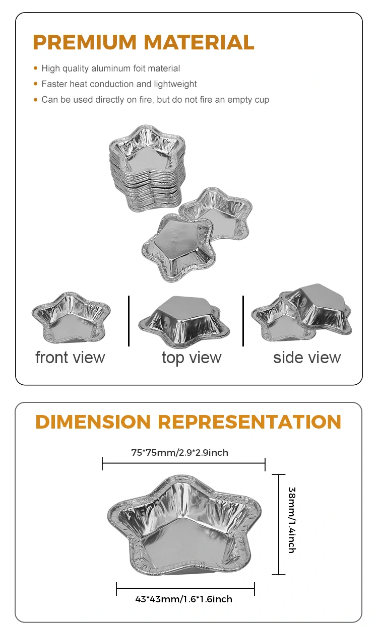 • Star-shaped aluminum foil tart cups for baking Aluminum Foil Food ContainerStar-shaped aluminum foil tart cups for baking Aluminum Foil Food Container